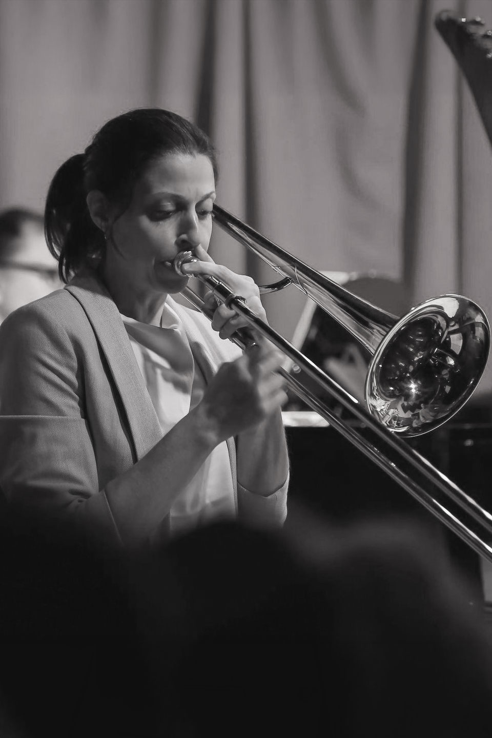 NYC based trombonist Sara Jacovino is an ambitious composer and arranger who has drawn the recognition of many of her peers nationwide. Hailed by the likes of David Baker as having a completely unique voice and aesthetic, she has been recognized with various awards from the BMI Foundation, Downbeat Magazine, the Airmen of Note, and The International Trombone Association. Throughout her time in NYC, Sara has performed alongside many jazz and pop greats such as: Adele, Frank Ocean, Johnny Mandel, Michael Feinstein, Claudio Roditi, Steve Davis, Rufus Reid, Lou Marini, John Fedchock, Snarky Puppy, and Lee Konitz. Sara has established herself as an active musician in the Broadway scene and currently holds the tenor trombone chair in the musical King Kong at the Broadway Theater. Sara can be heard performing as a bandleader of her own quartet as well as a member of several well respected NYC institutions including: The Birdland Big Band, The Diva Jazz Orchestra, David Berger and the Sultans of Swing, The Afro-Bop Alliance as well as countless other composers' orchestras. Her writing and playing is often featured by the Birdland Big Band, The Diva Jazz Orchestra, and can be heard on numerous albums by the University of North Texas One O'Clock Lab Band amongst others. Sara is sought after for commissioned works of music in various styles and ensemble configurations.