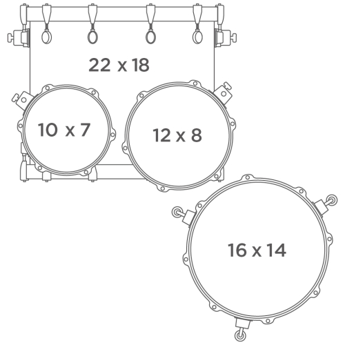 Inspiriert von der Design Lab Serie verfügen die Saturn Floor Toms über das neue „Lift“-Bracket-Design. Dabei befinden sich alle Metallkomponenten der Halterungen vollständig außerhalb des Kessels und sind durch eine spezielle Gummidichtung entkoppelt. Dadurch wird jeglicher Druck vom Kessel genommen und Vibrationsverluste werden effektiv verhindert – für maximale Resonanz und ein offenes, lebendiges Klangverhalten.