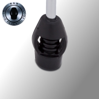 Ein innenliegender Splint verhindert, dass das Stahlbein direkten Bodenkontakt hat. Dadurch „schwebt“ die Floor Tom auf der federnden Gummifunktion des Fußes, wodurch Vibrationen nicht an den Boden abgegeben werden und die Resonanz maximal erhalten bleibt.